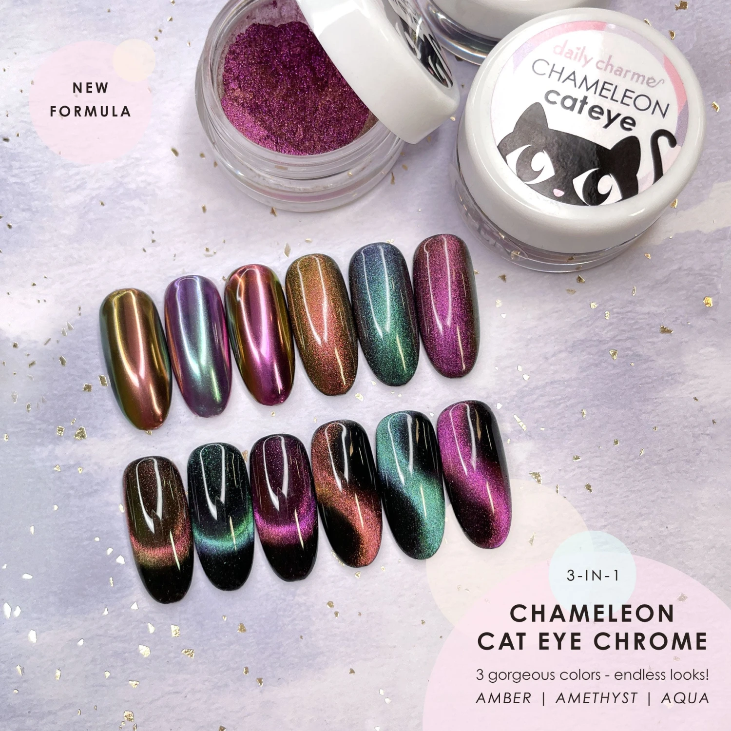 Love color-shifting chrome, magical chameleon cat eye, or beautiful metallic shimmer nails? You can now get all these different finishes with the 3-in-1 Chameleon Cat Eye Magnetic Chrome Powder! Aqua shifts color between purple, teal and green; it’s eye-catching and a must-have for mesmerizing galaxy nails!