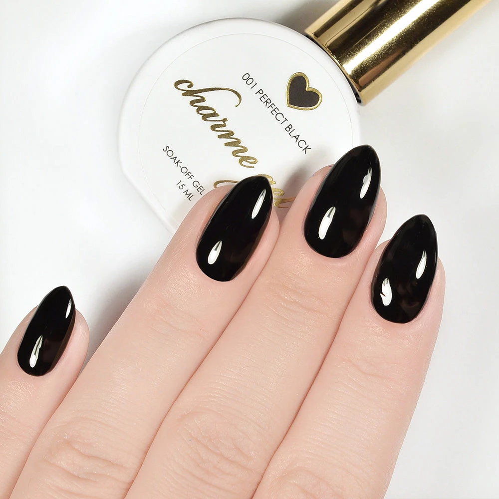 001 Perfect Black – THE black gel polish that you’ve been searching for, a true opaque black without green or blue hues!