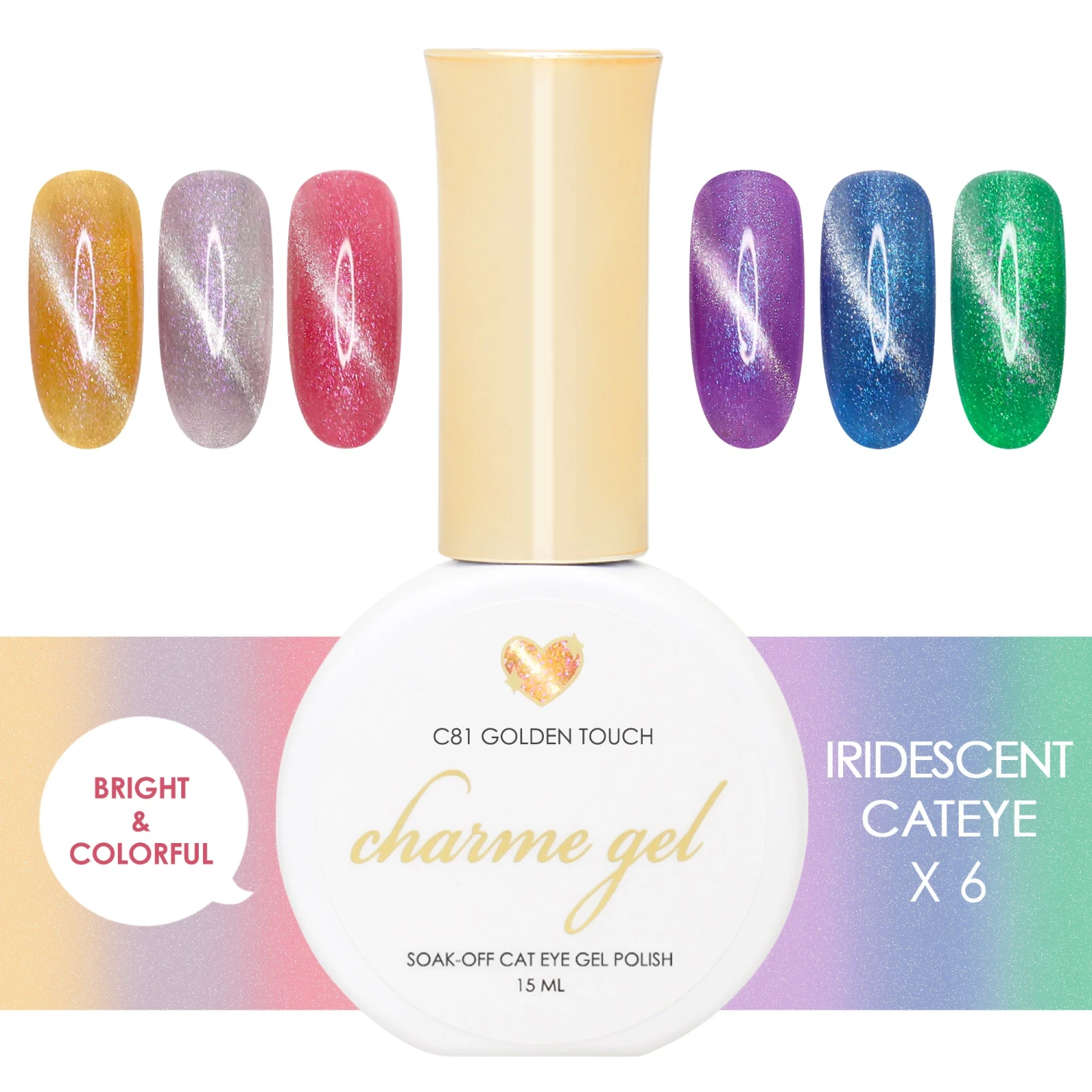 Get the entire Iridescent Charme Gel Cat Eye Collection for 20% off the original price!