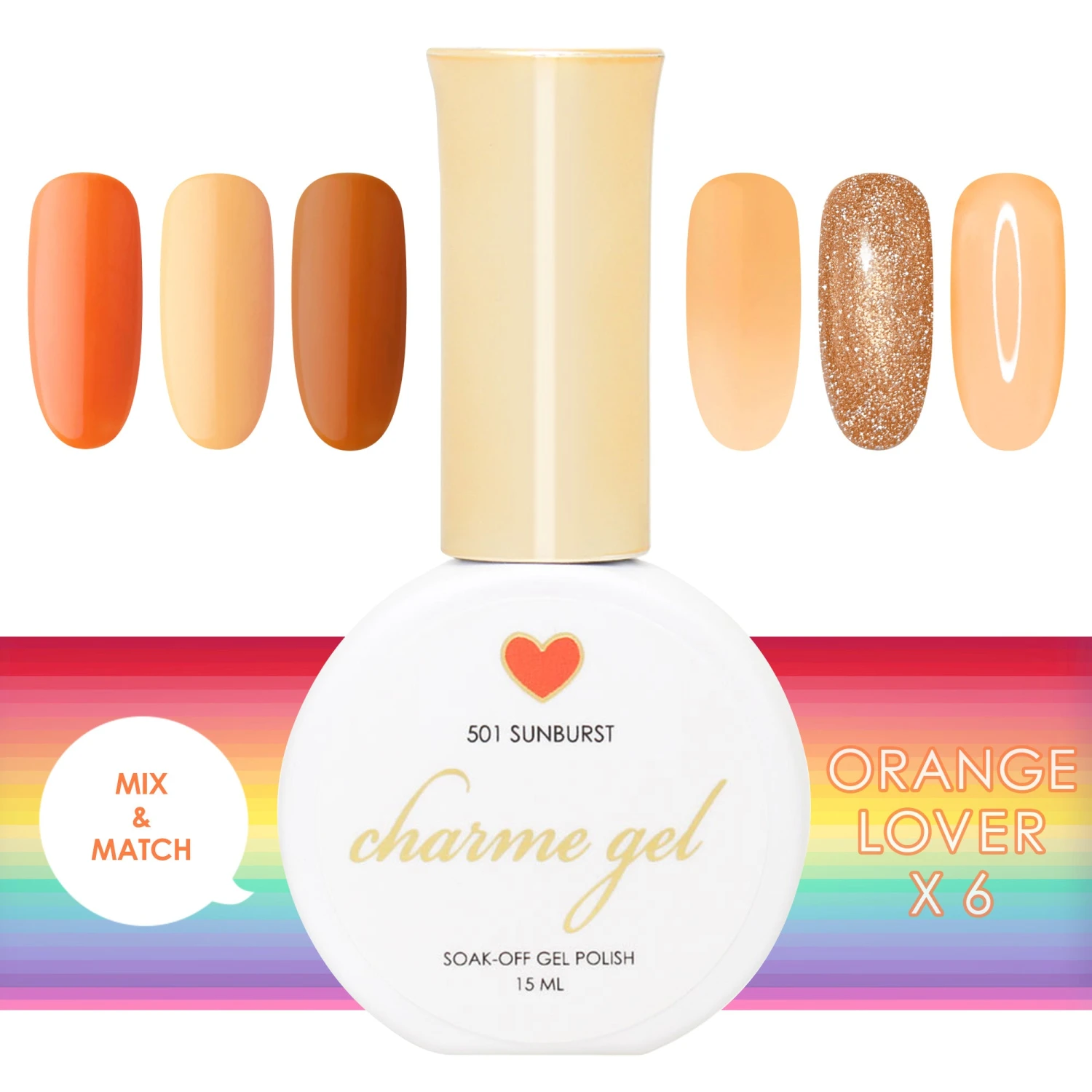 Get the entire Charme Gel Rainbow Lover Orange Collection for 20% off the original price!