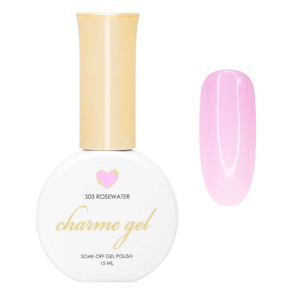 S03 Rosewater – A lovely shimmery blend of jelly pink inspired by scented garden roses and refreshing morning dew! Pretty with just one coat for a smooth glistering look or 2-3 coats for a more opaque effect.