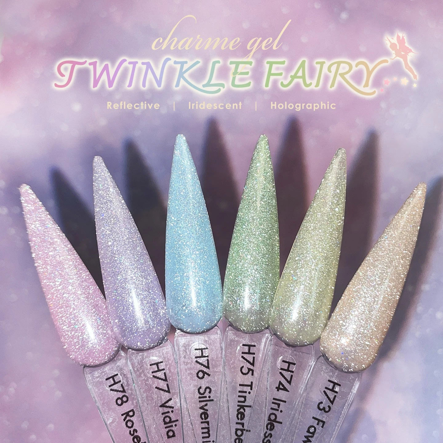 Our Twinkle Fairy Iridescent Flash gels are jam packed with diamond reflective, iridescent, and holographic sparkles to give it that extra magical twinkle. Watch your nails glisten with mesmerizing iridescent holographic shimmer under the sun, and sparkle and shine when you turn on flash!