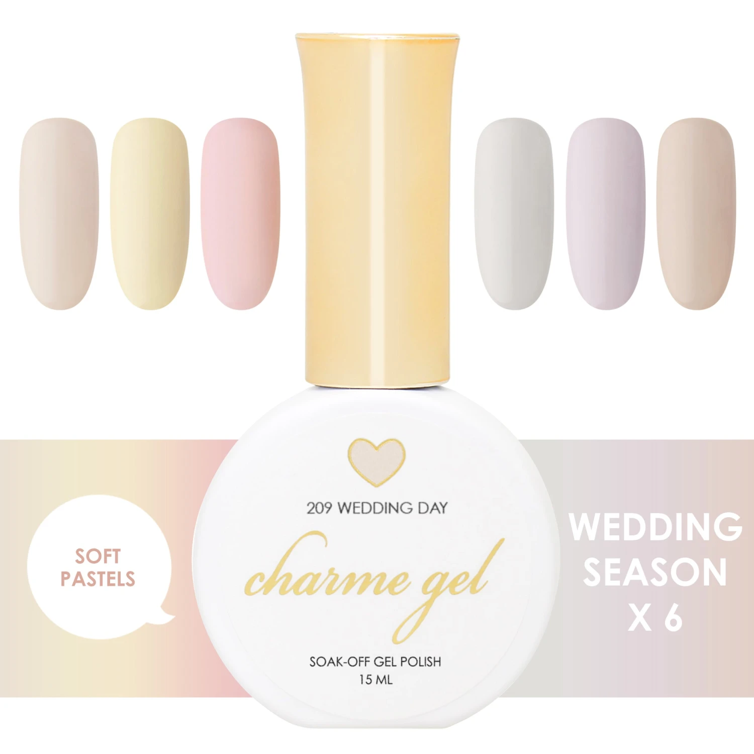 Charme Gel Wedding Season Collection – Love is in the air with these must-have soft pastel solid creme colors! This collection includes various pastel creme colors perfect for weddings, spring, and every other occasion. This bundle is an amazing budget friendly bundle to try our best-selling creme colors!