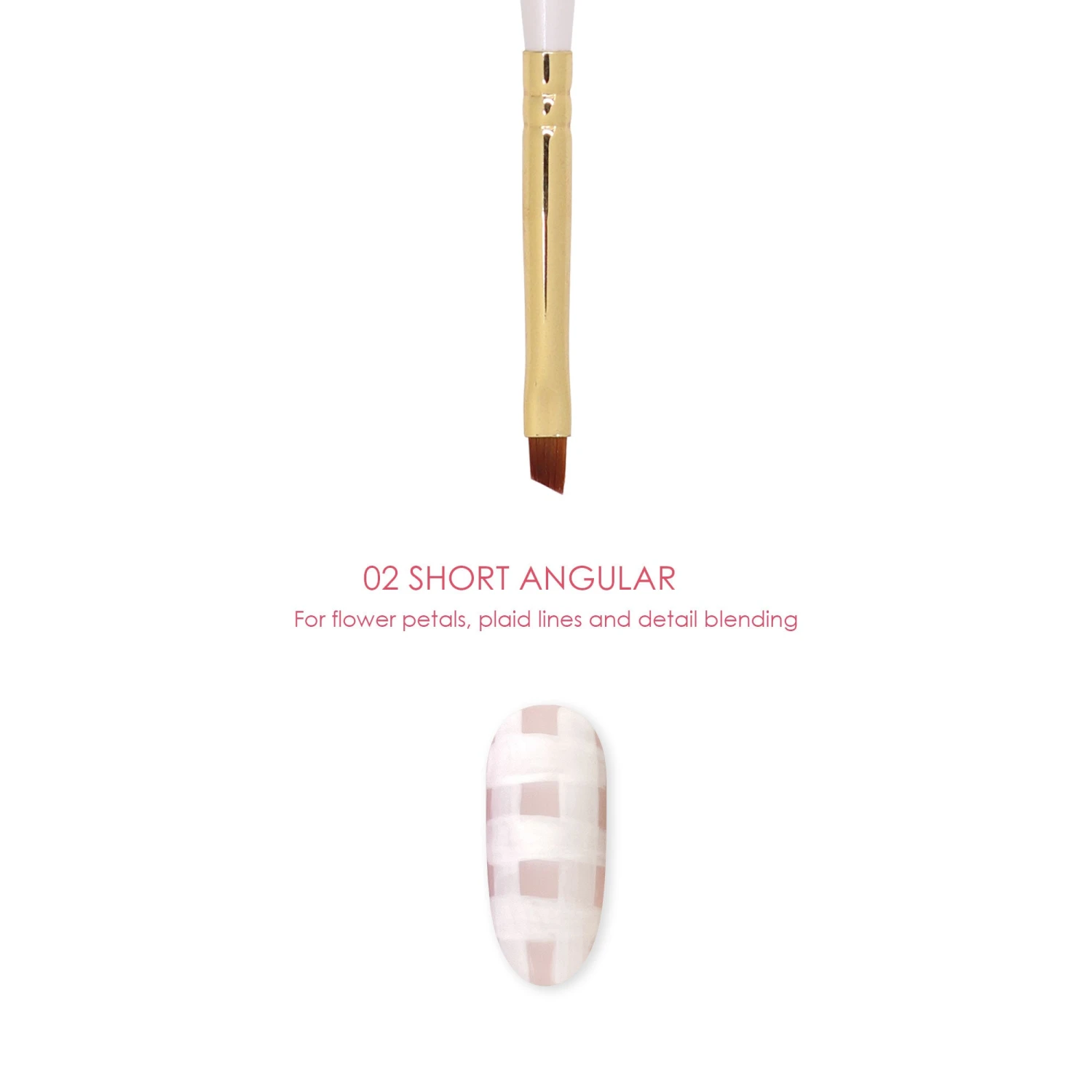 Daily Charme Nail Art Brush – 02 Short Angular is a small, short angled brush designed for painting flower petals and plaid lines, it’s also great for detail blending.
