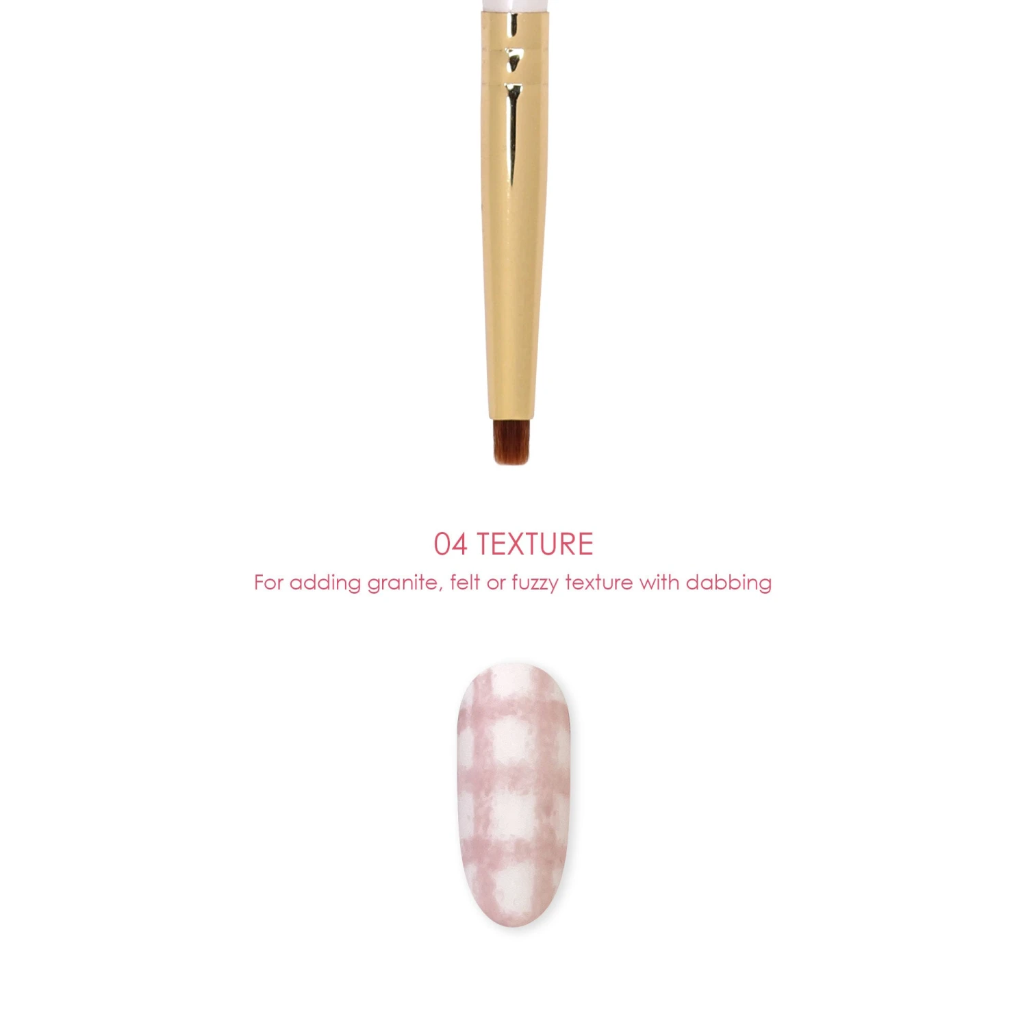 Daily Charme Nail Art Brush – 04 Texture is a small cylinder shaped brush with bristles made from a blend of goat hair and nylon to give it rigidity. This brush is perfect for creating textures such as granite, felt or fuzzy texture by gentle dabbing.