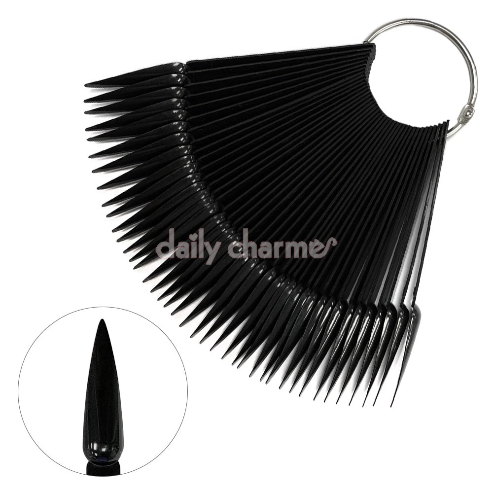 Stiletto shaped nail art swatch sticks. These are perfect for swatching your polish or gel collection, and displaying your nail designs! The black swatch stick is great for displaying cateye colors, holographic glitters or iridescent nail decors.