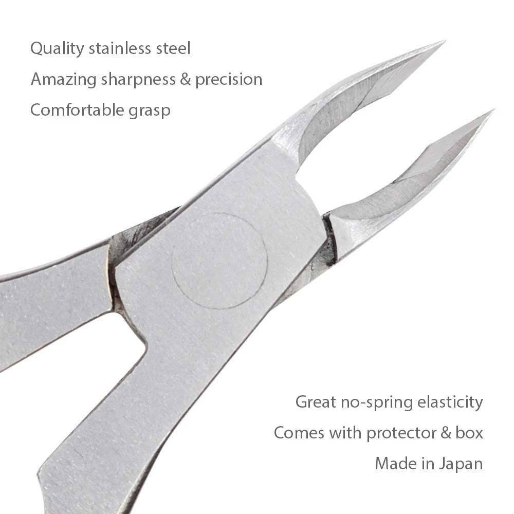 Professional nail cuticle cutter with a standard 5mm blade. This stainless steel nipper is super sharp so please use with caution when trimming cuticles. Featuring a no-spring smart opening design that offers great elasticity and comfort when in use. Perfect for a Russian style manicure. Comes with point protector and metal container.