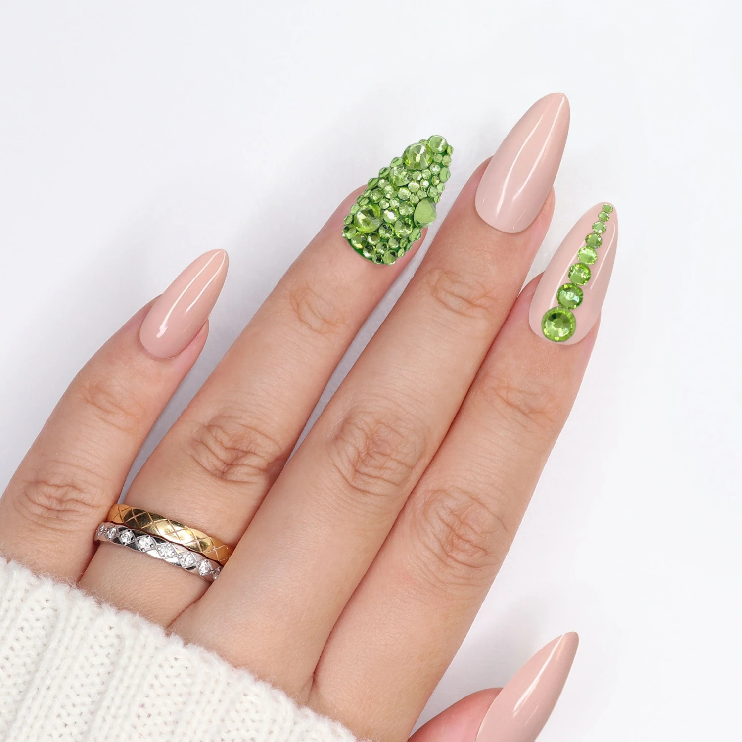 Twinkle Twinkle Sparkly Glass Round Flatback Rhinestone Mix in Peridot – a beautiful light green crystal to add viridescent sparkles to your nails!